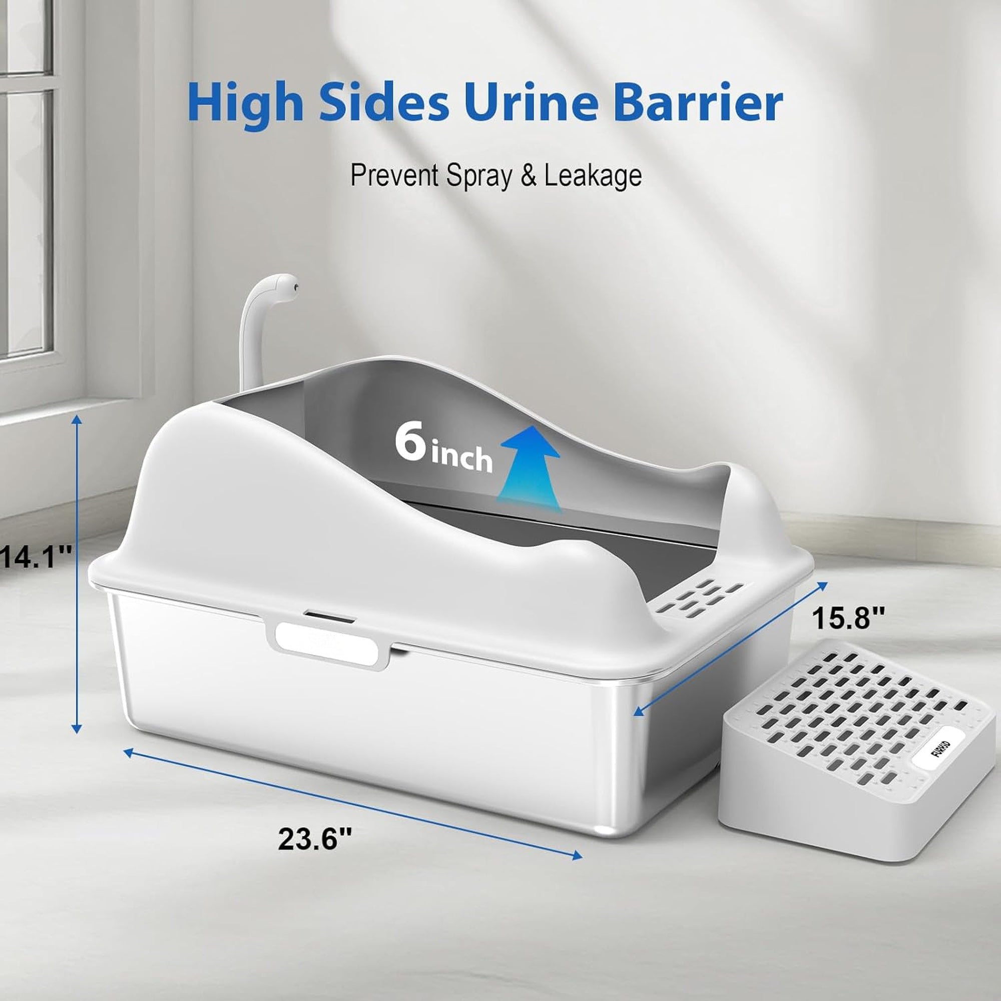 High Sides Prevent Urine Splash and Litter Scatter: The 6-inch raised side walls create an effective barrier to stop litter spray and urine leakage, keeping your floor clean and hygienic.
